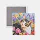 Fin katt med blommor magnet