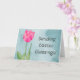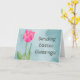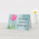 Min ursprungliga konst är presenterad på detta fina kort, bestående av mitt fotografi av en blå himmel med moln, med en vintage-illustrerad rosa tulpan framför. Orden "Sending Easter Blessings" står på framsidan och på insidan står "Easter brings hope, love and joy. May your day be blessed!" för ett fint och hjärtligt påskkort.