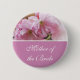 Snygg rosa cherry blommar vår bröllop mor, far, mormor, granpa av briden eller groom namn-stift, knapp. Blommigtens fotokonst.