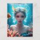 Söt sjöjungfru under havet under vatten med korall och fisk. Fantasy ai art.