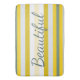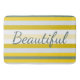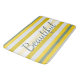 Designer badmat i en bred modern gult, vit och teal rand tryckt. Texten kan växlas till vilket inspirerande meddelande som helst eller text som kan tas bort. Det vita rand kan vara personlig till valfritt färg.