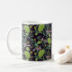 Fina blommor, vindruvor och rosa av grönt kaffemugg