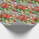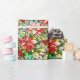 Glaset är lätt och glatt och är utformat för flerfärgade röda nedfläckader av blommor som ett upprepande mönster med grönt blad.