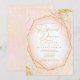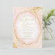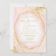 En akvarellbakgrund i nyanser av roséguld pryds av ett abstrakt mönster av fina guldlinjer och glittrande ljuseffekter för att skapa delarna i denna vackra brölloppsserie. Övningsmiddagsinbjudan som visas här har också en vacker övergångsram för att hålla all din text. Lägg enkelt till era egna namn, bröllopsdatum och evenemangsinformation med hjälp av den medföljande mallen. Sök ID867 för att se andra delar och färgval för denna serie.