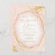 En akvarellbakgrund i nyanser av roséguld pryds av ett abstrakt mönster av fina guldlinjer och glittrande ljuseffekter för att skapa delarna i denna vackra brölloppsserie. Övningsmiddagsinbjudan som visas här har också en vacker övergångsram för att hålla all din text. Lägg enkelt till era egna namn, bröllopsdatum och evenemangsinformation med hjälp av den medföljande mallen. Sök ID867 för att se andra delar och färgval för denna serie.