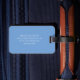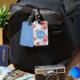 Fina röda papies med blå fjärilar och Namn Bagagebricka