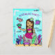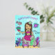 Ett sött och prisvärt sätt att inbjuda vänner till en liten flickas födelsedagsfest. En handritad folkkonst stil whimsical afroamerikansk eller latinamerikansk sjöjungfru och hennes undervattensvänner i starka färger flickas födelsedagsinbjudan.