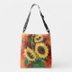 Fina tre solblommor - konstmålning axelväska