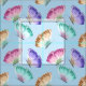 Favoriter med ett vackert mönster. Vattenfärgsmusslor, målade i pastellform färg inklusive rosa, lila, blått, gult och grönt. Ljusblå bakgrund.