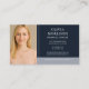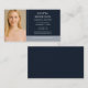 Financial officer photo navy blue business card featuring a clean corporate layout with professional headshot placement for a polished executive presence. Designed for financial officers, finance executives, and corporate leaders who want to convey authority, trust, and credibility. Ideal for board meetings, corporate networking, and client consultations. Editable text and photo placement. Clean print-ready layout.