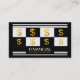 A bold, modern business card designed for financial advisors who specialize in strategic money management and wealth planning. The layout features a sleek checkerboard grid of alternating black and white squares, each centered with a golden dollar sign — symbolizing tactical financial moves and high-value outcomes. Beneath the grid, the headline “WEALTH STRATEGY” stands out in crisp white typography, followed by the subtitle "MONEY MANAGEMENT” in elegant gold. The design evokes clarity, confidence, and control, making it ideal for professionals who position finance as a game of smart moves and long-term vision.