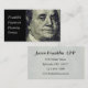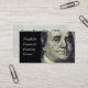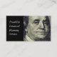 Nära Benjamin Franklin's porträtt. Underbart ikonskt affärskort för alla typer av finansiella yrken, inklusive banktjänster, investeringar och finansplanering.