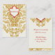 Finare blommar upp gyllene bröllopskort. Ett arabesque indisk muslimsk bröllopsmottagningskort är en mycket etnisk inbjudan från stil, men kan också vara underbart för traditionellt bröllop! Med färg av guld, gult, grädde och rött som är mycket populära i bröllop färg bland hinduiska eller indiska brudar. Den ömtåliga blomningen i guld ger stollig den sötaste beröringen för en underbar händelse fylld med klass. Toppen av det här bröllopsmottagningskortet är försedd med gyllene, blomstrande inslag som gör en triangel eller som formar till inbjudan. I mitten finns en blomstrande vapensköld som håller initialer och stam. Fetma, ljusa färger gör det svårt att missa och förbluffa den här stationen. Du kan anpassa all text på det här bröllop-papperet. Om du vill ändra texten användor du anpassningsalternativen. Du kan också ändra teckensnitt, storlekt teckensnitt, färg eller textplacering genom att välja att anpassa det.