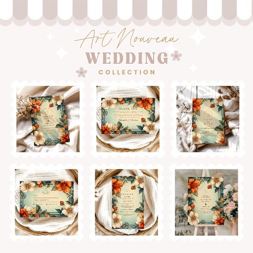 Finare Blommigt Bröllop Art nouveau OSA Kort