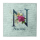Vackra blommigtar och i finare omfattar guld löv, lila ro och blåblommor på brev/ursprungligt N med vintage blå bakgrund.
