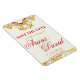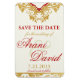 Finare blommar Golden Spara datum magneter. En arabesque indisk muslimsk bröllop Temed spara datum magneter är en underbar bröllopsförmån för dina gäster! Med färg av guld, gult, grädde och rött som är mycket populära i bröllop färg bland hinduiska eller indiska brudar. Ett vackert bröllop-keepé även för det traditionella bröllop. Den ömtåliga blomningen i guld ger stollig den sötaste beröringen för en underbar händelse fylld med klass. Överst på denna spara i bröllop läggs dateln till med guldblomning inslag som bildar en triangel eller klinga som en form till inbjudan. Fetma, ljusa färger gör etiketten svår att missa och bedöva. Du kan anpassa all text i bröllop spara datum. Om du vill ändra texten användor du anpassningsalternativen. Du kan också ändra teckensnitt, storlekt teckensnitt, färg eller textplacering genom att välja att anpassa det.