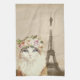 Roligt kökshandduk för kattälskare har vintage med sepiatfärgad bakgrundsbild av Eiffel Torn med övertäckning av vacker finare-katt med blommigt krona.