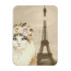 Vintagens foto av en sepiatonfärgad nyans av Eiffel Torn med övertäckning av den vackra finare-katten med blommigt krona