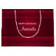 En födelsedagspressning med röd bakgrund som dekoreras med elegant och prydnadsmönster längs gräns.