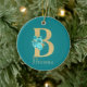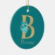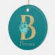 Söt keramiska prydnadsföremål har guld glitter brev B med ro och guld blommigt bouquet med teal bakgrund. Anpassa med namn i guld-färgadens teckensnitt.