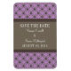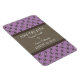 Trendig och chic Finare Lattice Spara datumpremiummagneten med en snyggt cirkel och diamant som studerade mönster över en pulserande lila bakgrund med ett brett, tvåtonat brunt gräns. I elegant är spara datum magneter perfekt för att tillkännage ert moderna bröllop. Enkel att anpassa, lägg bara till din bröllop-information i den text fält tillhandahåller. Klicka på Anpassa om du vill söka efter fler anpassningsalternativ.