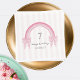 Matematik med gigantisk födelsedag med illustration av en rosa regnbåge med rosa bågar i ändarna. Ljus rosa bakgrund i rand.