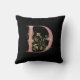 Finare rosa glitter D med löv och snurrar över guld och en fjäril mot svart bakgrund.