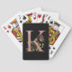 Finare rosa glitter K med löv och snurrar över guld och en härlig fjäril på grått bakgrund.