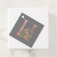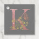 Finare rosa glitter K med löv och snurrar över guld och en härlig fjäril på grått bakgrund.