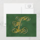 Finare royal elegant monogram brev L i gyllene gult på grumlig bakgrund (kan strykas) placerad på färgadens bakgrund som också kan ändras till önskad färg eller helt och hållet tas bort och ersättas med ett personlig fotografi. Varje brev i alfabetet finns på vykort med matchande frimärke på mitt galleri. Dessutom finns det hälsning- eller anteckningskort på frimärke-bilden av det monogrammade brev som du väljer.