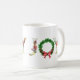 Finare-skript med enkel blommigt Julkrans och fris Kaffemugg
