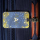 Finare och snyggt personlig bagageetikett som har en glatt bakgrund med glättare och glättare guld. Texten är helt och hållet anpassade.