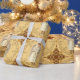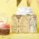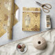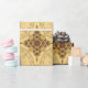 Söt liten segrande ängel på en guld brocade geometrisk bakgrund.