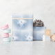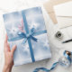 Fintvätt av snurrande mönster utstrålar symmetriskt från en mittpunkt och skapar ett blommigt-liknande motiv av en snöflake på en pastellblå bakgrund.