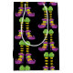 Halloween-temat i mönster har finare häxor som är utklistrade i färgade stripade strumpor och lila poesskor på svart bakgrund