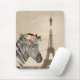 Roligtens muspekare har vintage med en sepiatfärgad bakgrundsbild av Eiffel Torn med övertäckning av vackra vattenfärgszebra porträtt med blommigt krona