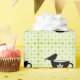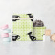 Bakgrund för kontroll av inlagd grönt med silhuett av tekopp och en avbländad fink