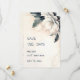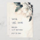 This elegant save the date card features and ivory and blue watercolor 3D flower. Matching casual wedding invitation available.
