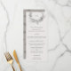 A refined botanical wedding menu card featuring a delicate wreath illustration, soft neutral tones, and elegant minimalist typography. Designed to complement a fine art wedding suite, this menu adds a sophisticated and cohesive touch to your reception tablescape. Perfect for garden, vineyard, and classic romantic weddings, it showcases each course with understated elegance while enhancing a timeless, elevated dining experience.