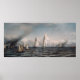 Finish - Första internationella tävlingen för America's Cup, 8 augusti 1870, en målning av Samuel Colman. Även om detta konstverk är digitalt återställt, lämnas sprickorna och de fina linjerna intakta på denna målning för att hedra den tid då denna målning uppstod.