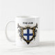 Den kalla vapenskölddesignen med finlandssvensk medborgareflagga färgar. Byt ut text "Finland" med din egna slogan för att skapa en finlandssvensk pridegåva för unik personlig. Personliggåvaidéer: #1 finlandssvensk pappa, mamma, morfar, mormor, uncle, moster, fru, make, [annan familjemedlem]; Stolt att vara finlandssvenskt, Finland stenar.