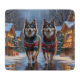 This festive design captures the joyful spirit of the holiday season, featuring an adorable dogs.Nestled in a winter wonderland, complete with a decorated Christmas tree, and beautifully wrapped presents. Snowflakes gently fall, adding a magical touch to the scene, while the vibrant colors of the holiday decorations create a warm and cheerful atmosphere.