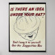 Finns det en idé under er hatt? Underbar kvalitet, återställd. Finns det en idé under hatten? Världskrig 2 i förslagsruta poster. WW2Poster-butiken har detta och hundratals ww2-poster, mugg, ww2 frimärke och mer minnesutrymme. Reliva och omhulda Amerikansk historia. Det här och många andra produkter med Finns det en idé under din hatt? Förslagslåda i vår samling.