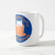 Cute ceramic mugg med animerad tecknad av en vit katt inuti en orange kaffe kopp som är inställd i en blå cirkel. Orange säger att jag tycker om katter och kaffe och kanske två människor. Underbar presentidé för alla kattfancirer.