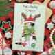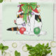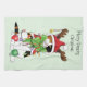Cute calico-katten som klämts upp i julklapp ljus, stoppade tändare, jultomten och en stor grönt mot en ljust grönt bakgrund. kattunge är inte lycklig!