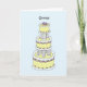 En illustration av en snyggt med flera skiktade kakor av pastel-färgad, åtföljd av ord Onnea, som elak Grattisar på finska. Bilden har en blek blå bakgrund för färgaden.