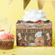 Fånga helgdag glädje att baka med den här härliga scenen med en glad kock omgiven av julgransar och festliga dekorationer. En hjärteberande firande av årstidens sötaste traditioner.