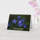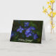 Min ursprungliga digitala grafik med mitt originalfoto av blåa blommor i en skugga, som ligger i en skugga, visas på den här söt blommigtens födelsedagskort. Bilden bearbetades med en vattenfärgsfantasi för ett illustrerat och vismiskt utseende. På kortets framsida stater "Birthday Greetings!" och på insidan av kortet stater "Du är välkommen idag och bra sak alltid! Grattis på födelsedagen!" Ett underbart kort för alla typer och blommor i älskare.