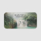 Ett namn bricka med ett fantastisk-foto. En antennsyn på några utandningsluftsvattenfall omgiven av en lush grönt av träd och berg.