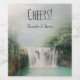 Flaska-etiketter med ett fantastisk-foto. En antennsyn på några utandningsluftsvattenfall omgiven av en lush grönt av träd och berg.